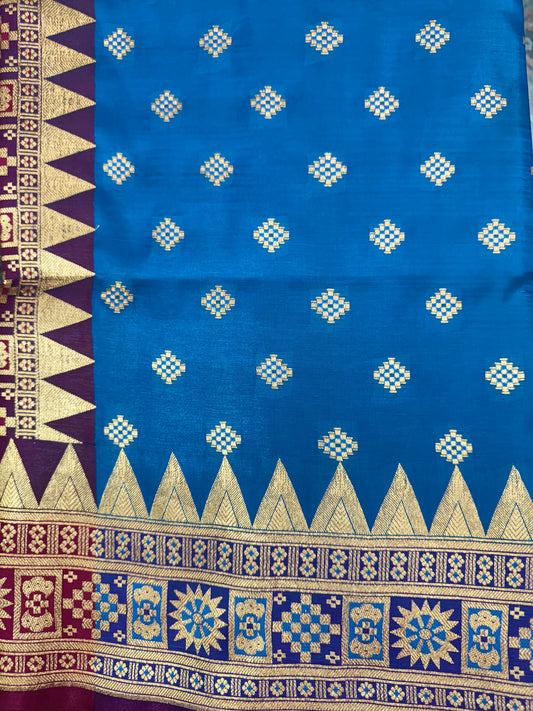Organza Silk Phekwa Butidar Design Temple Border Blue Banarasi Saree