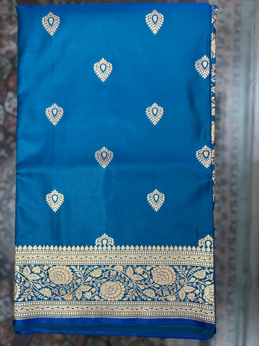 Organza Silk Phekwa Butidar Design Royal Blue Banarasi Saree