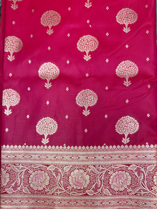 Organza Silk Phekwa Butidar Design Reddish Pink Banarasi Saree