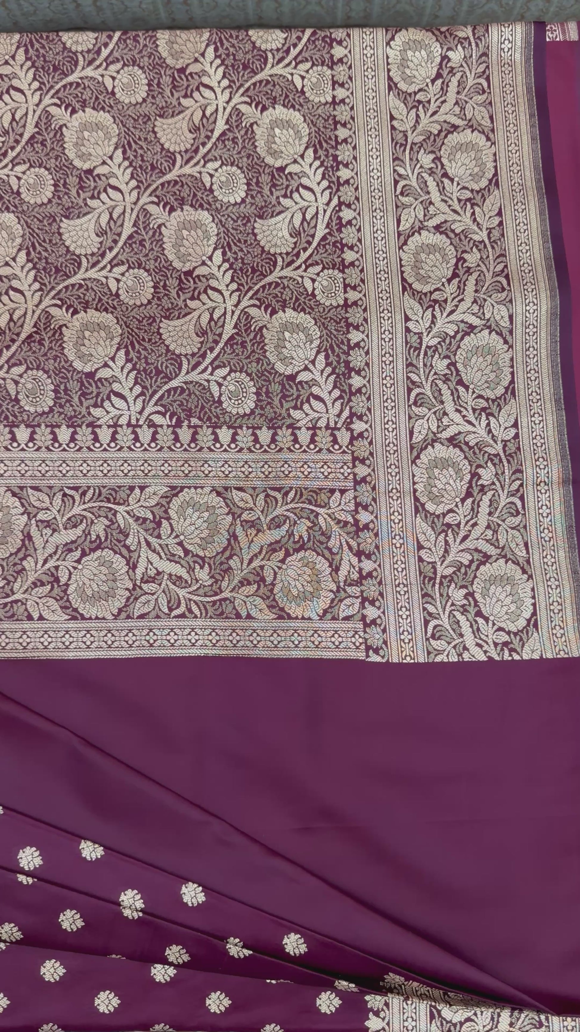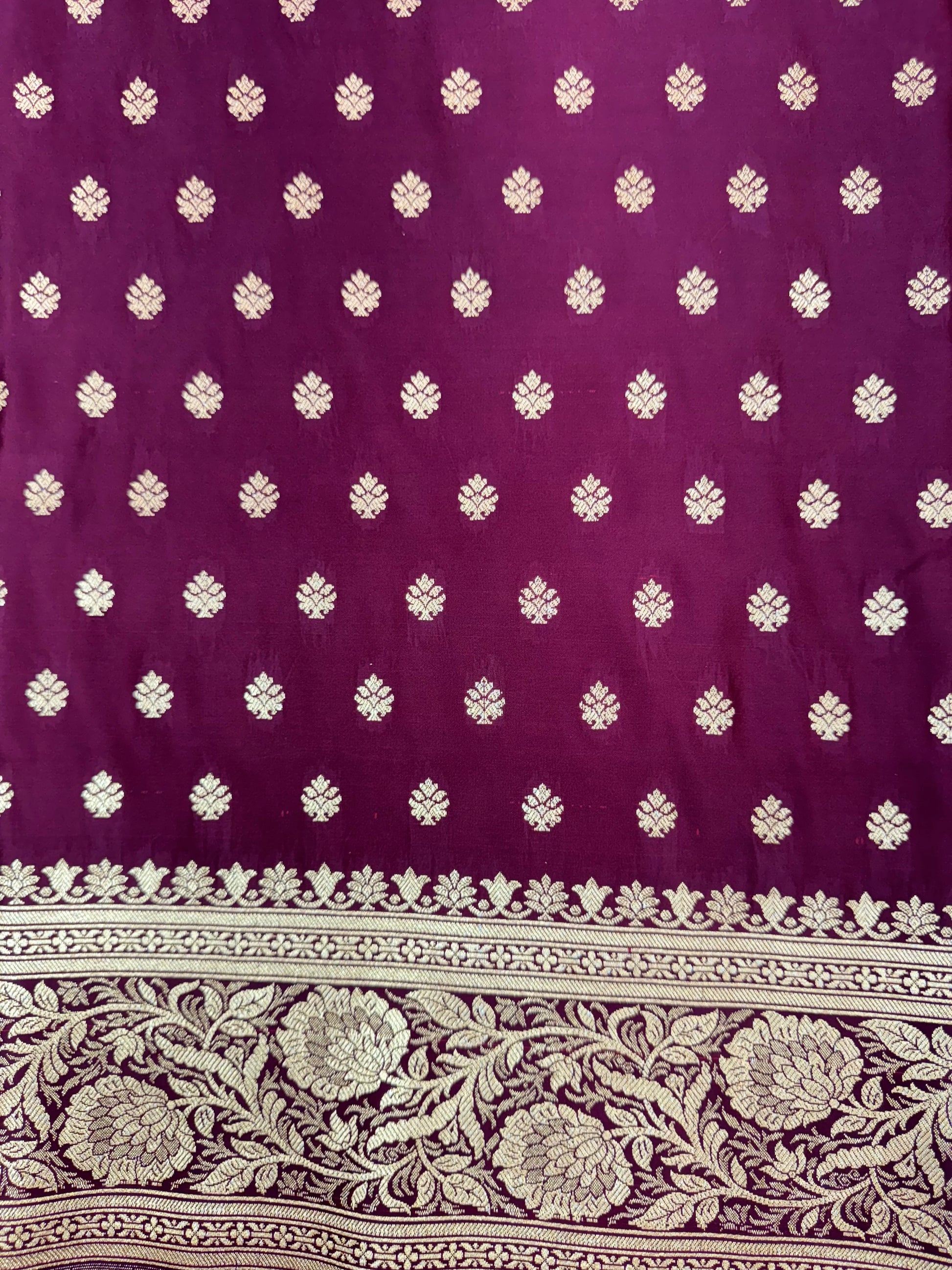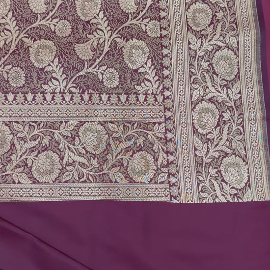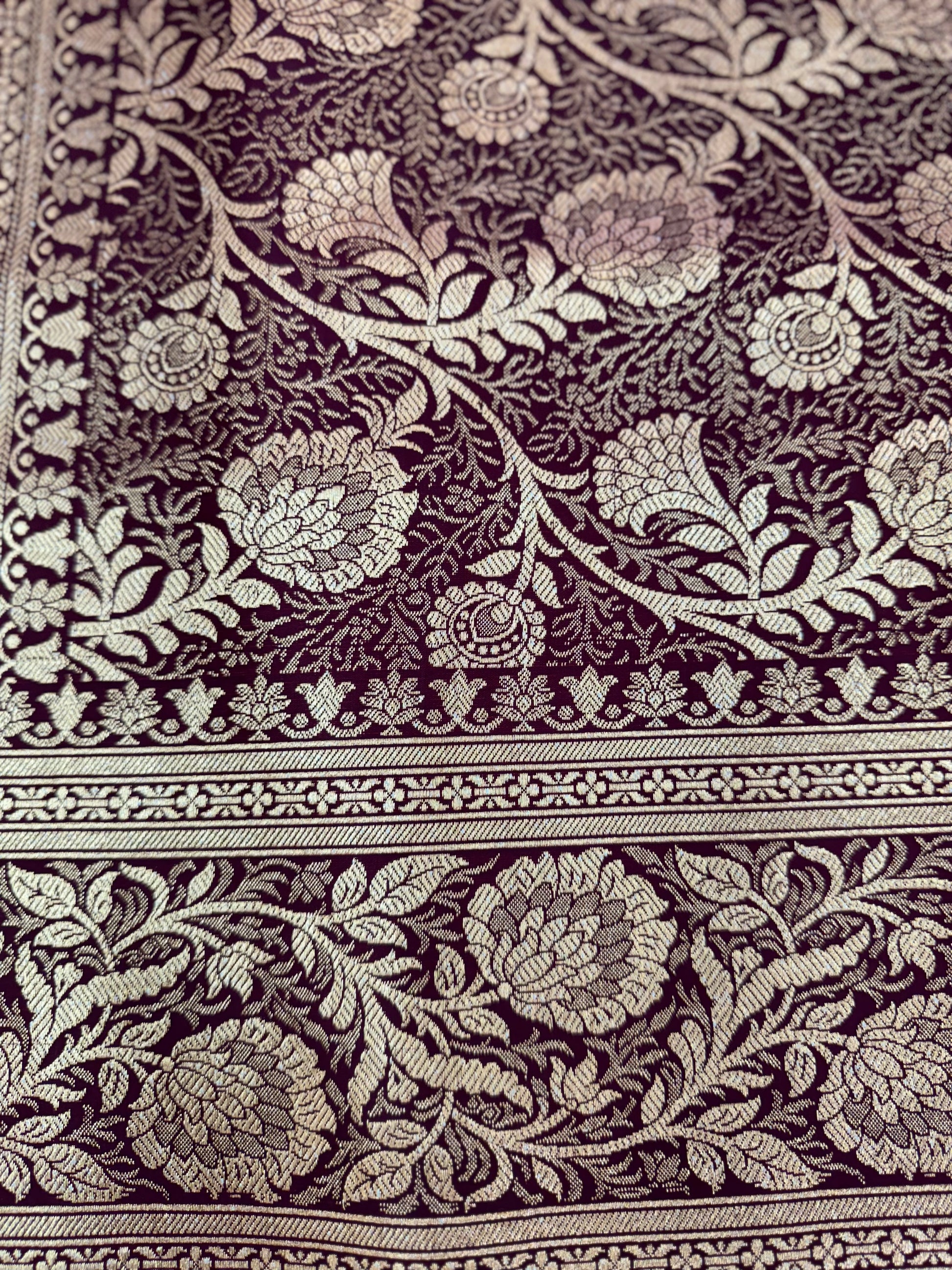 Organza सिल्क Phekwa (Cutwork) स्टाइल Butidar डिज़ाइन Floral बॉर्डर Maroon बनारसी साड़ी
