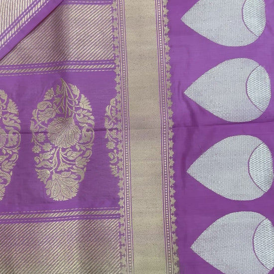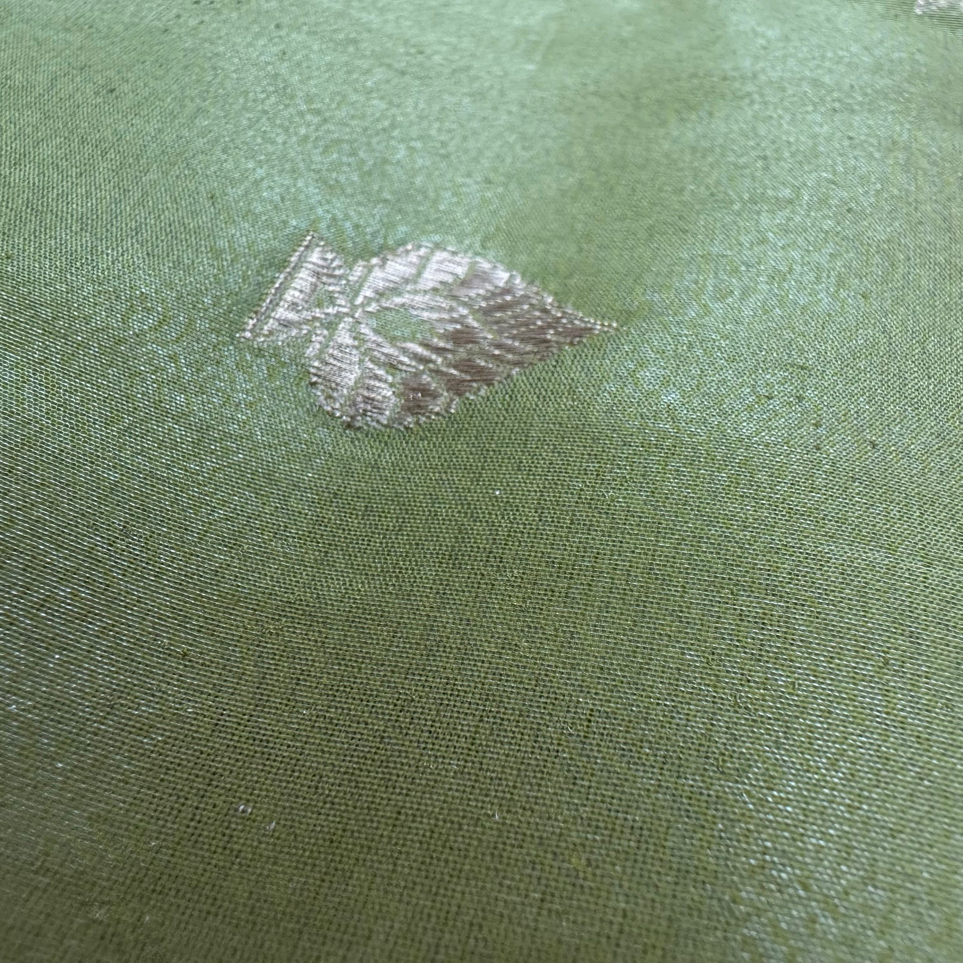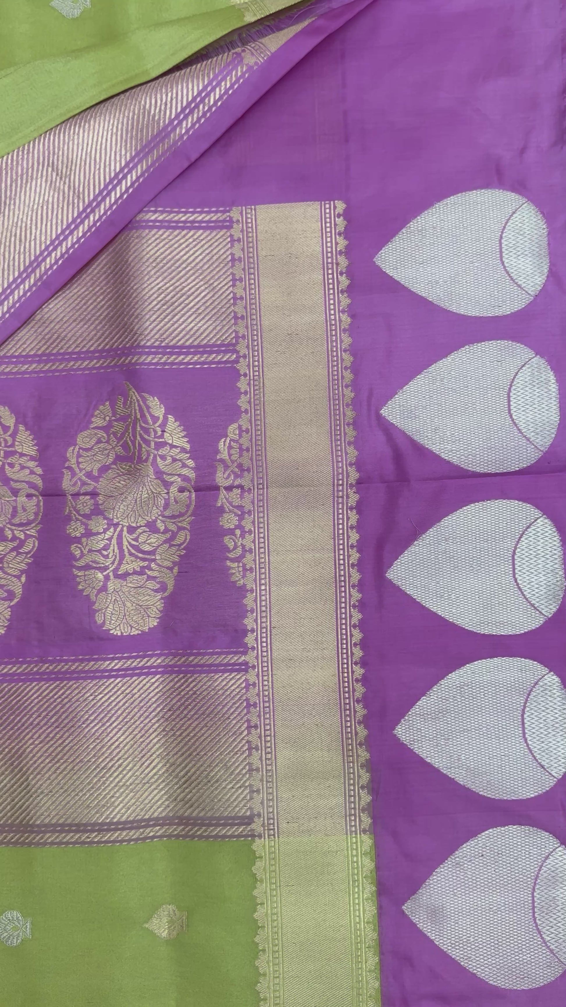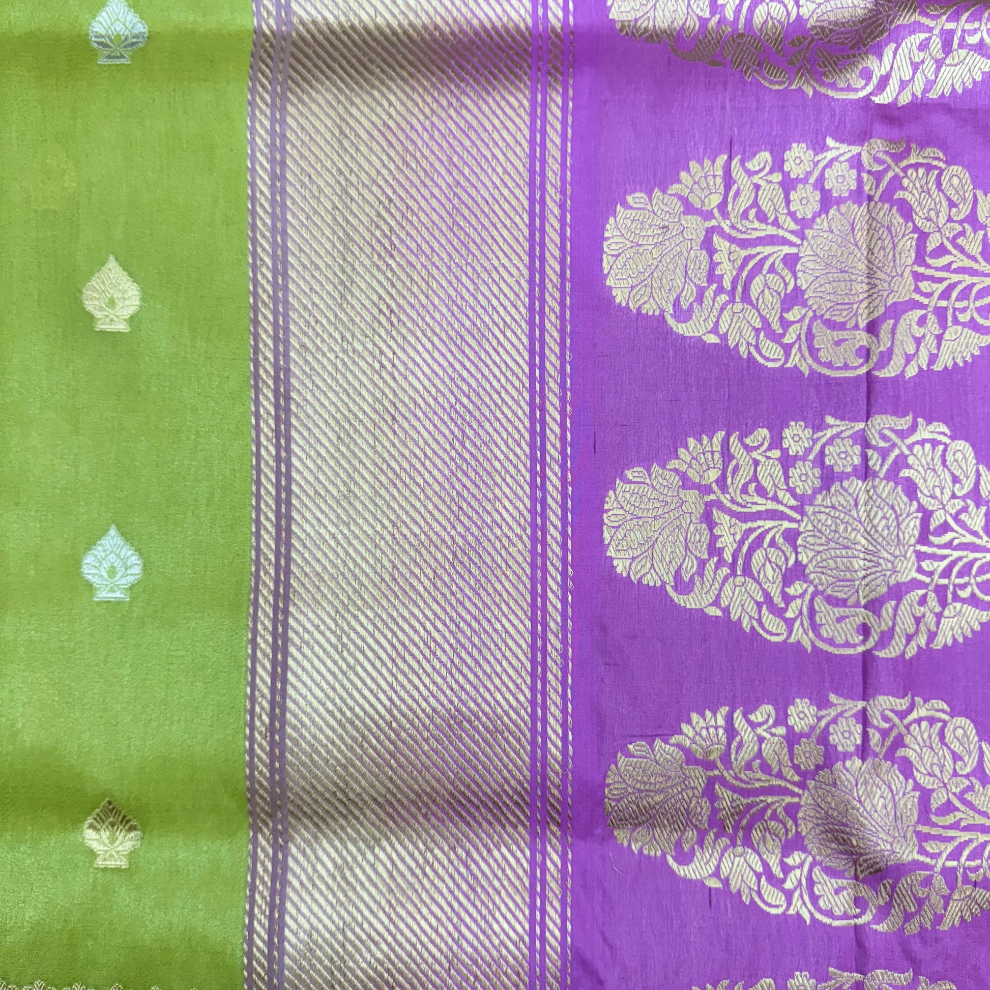 Pure Katan सिल्क Kadhua स्टाइल Butidar डिज़ाइन Floral बॉर्डर Olive Yellow बनारसी साड़ी