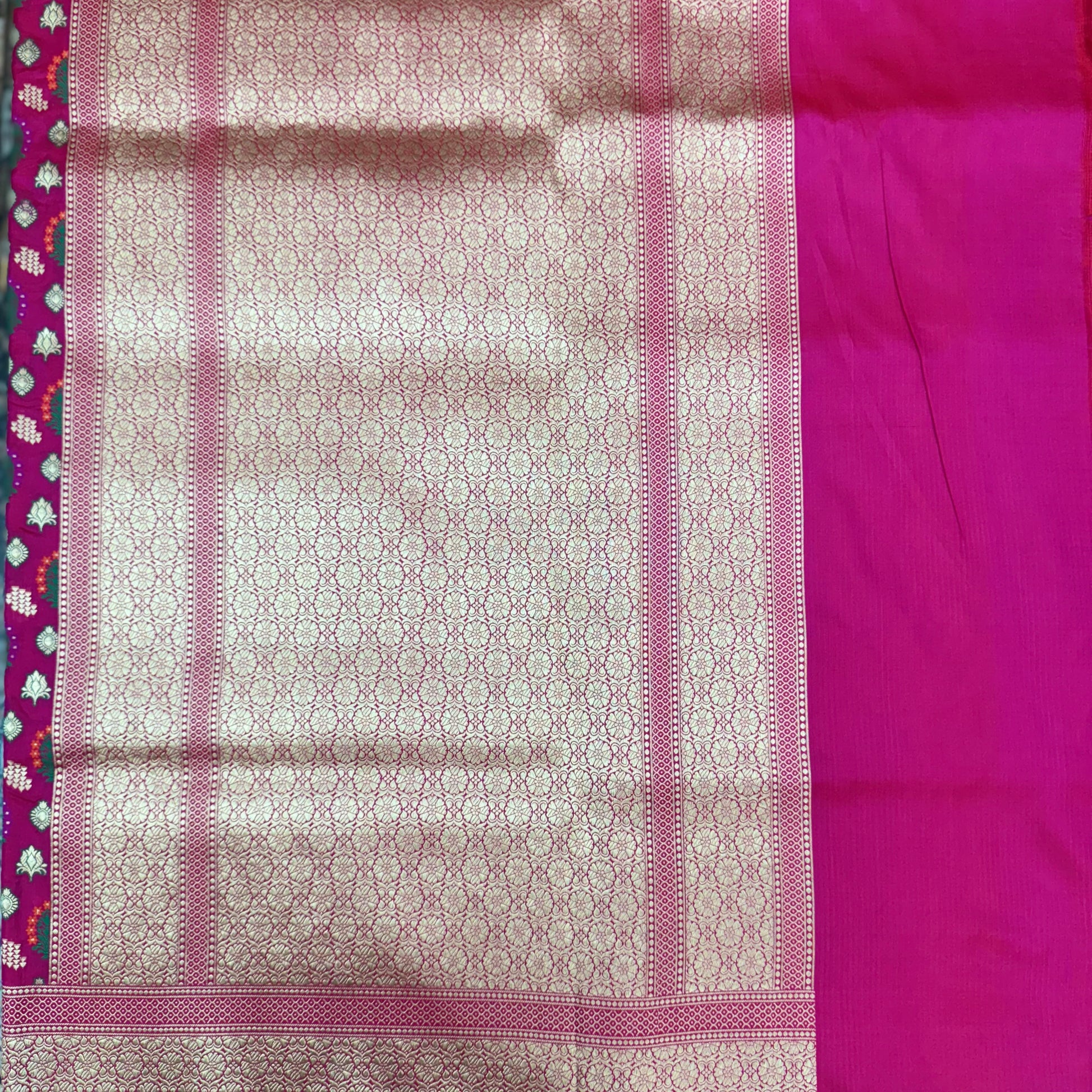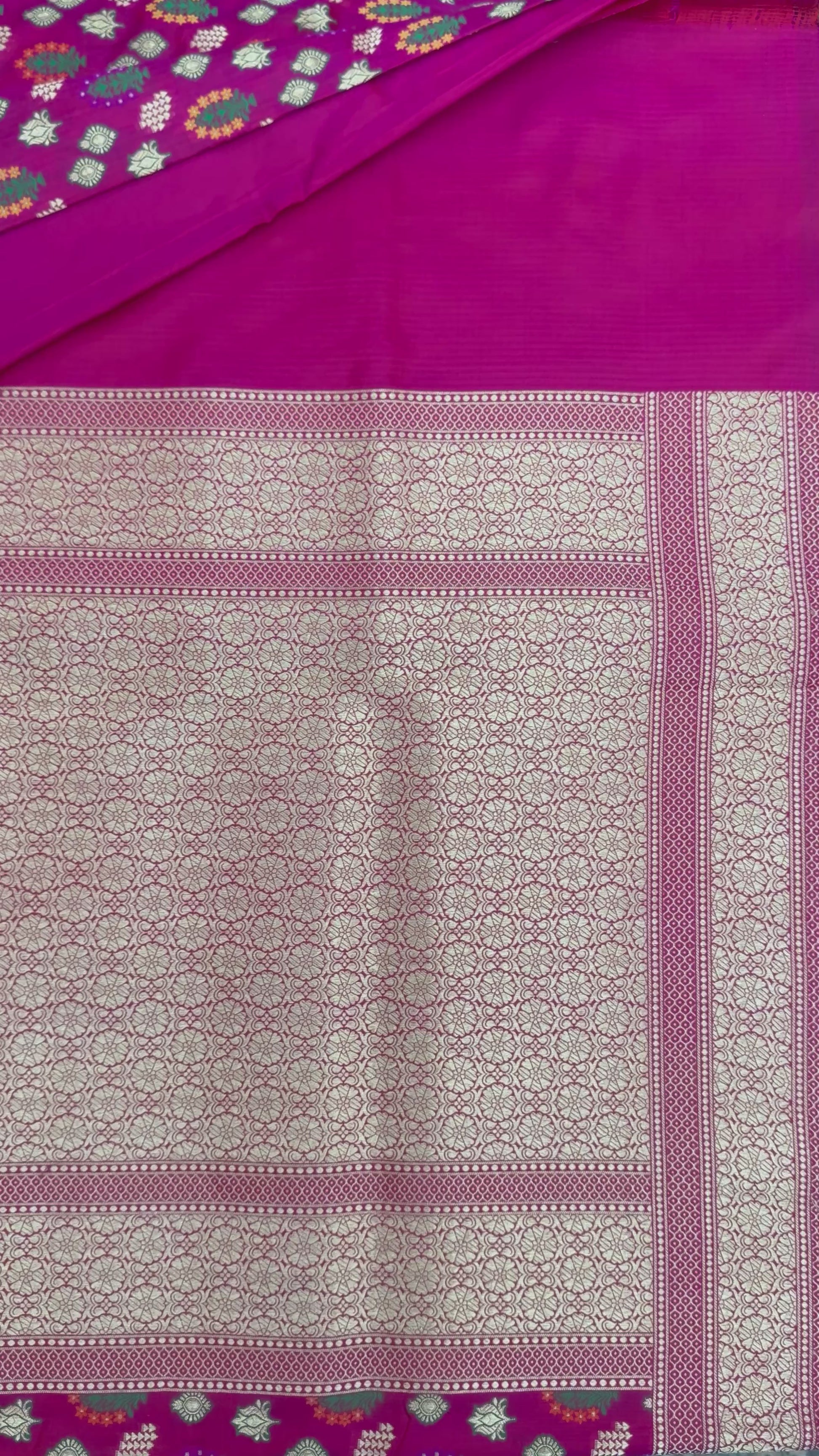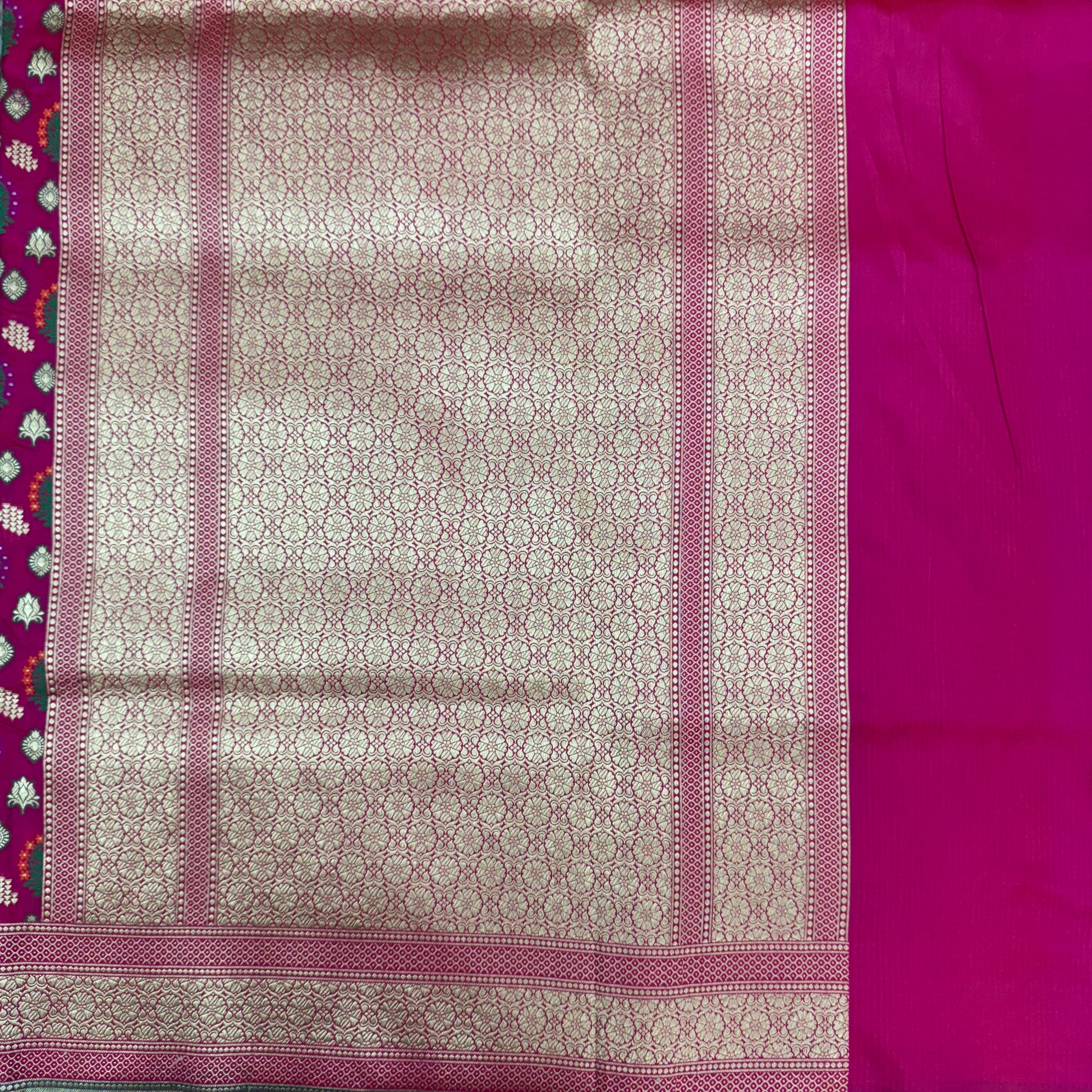 Pure Katan Silk Kadhua Style Butidar Meenakari Design Floral Border Red, Maroon, and Green Banarasi Sari