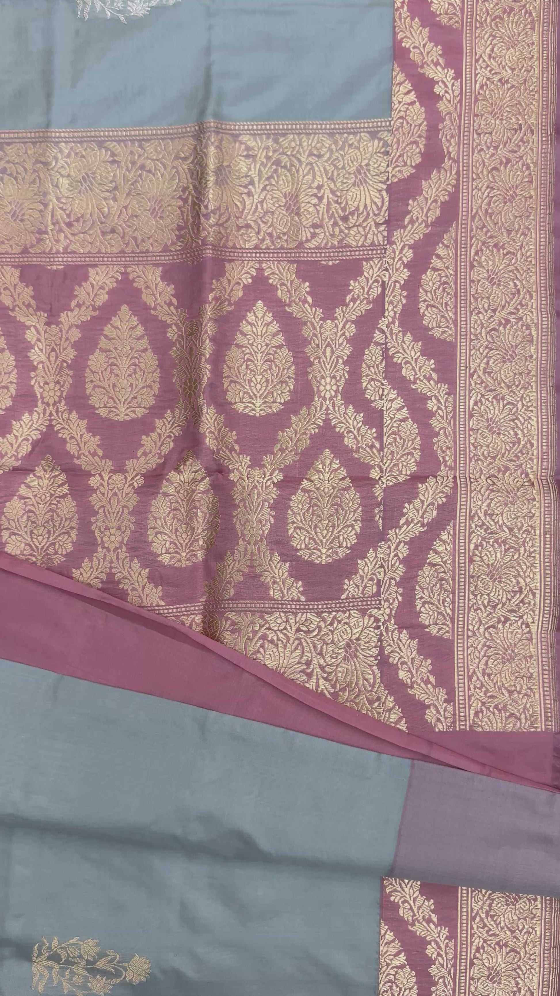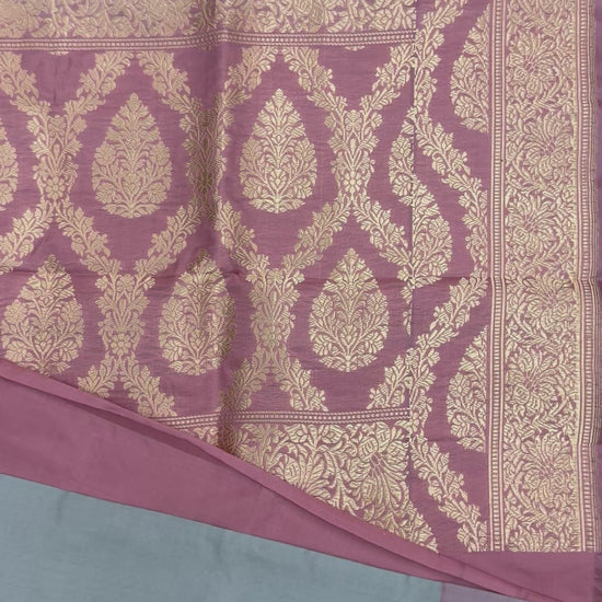Pure Katan Silk Kadhua Style Butidar Design Floral Border Ash Grey Banarasi Sari