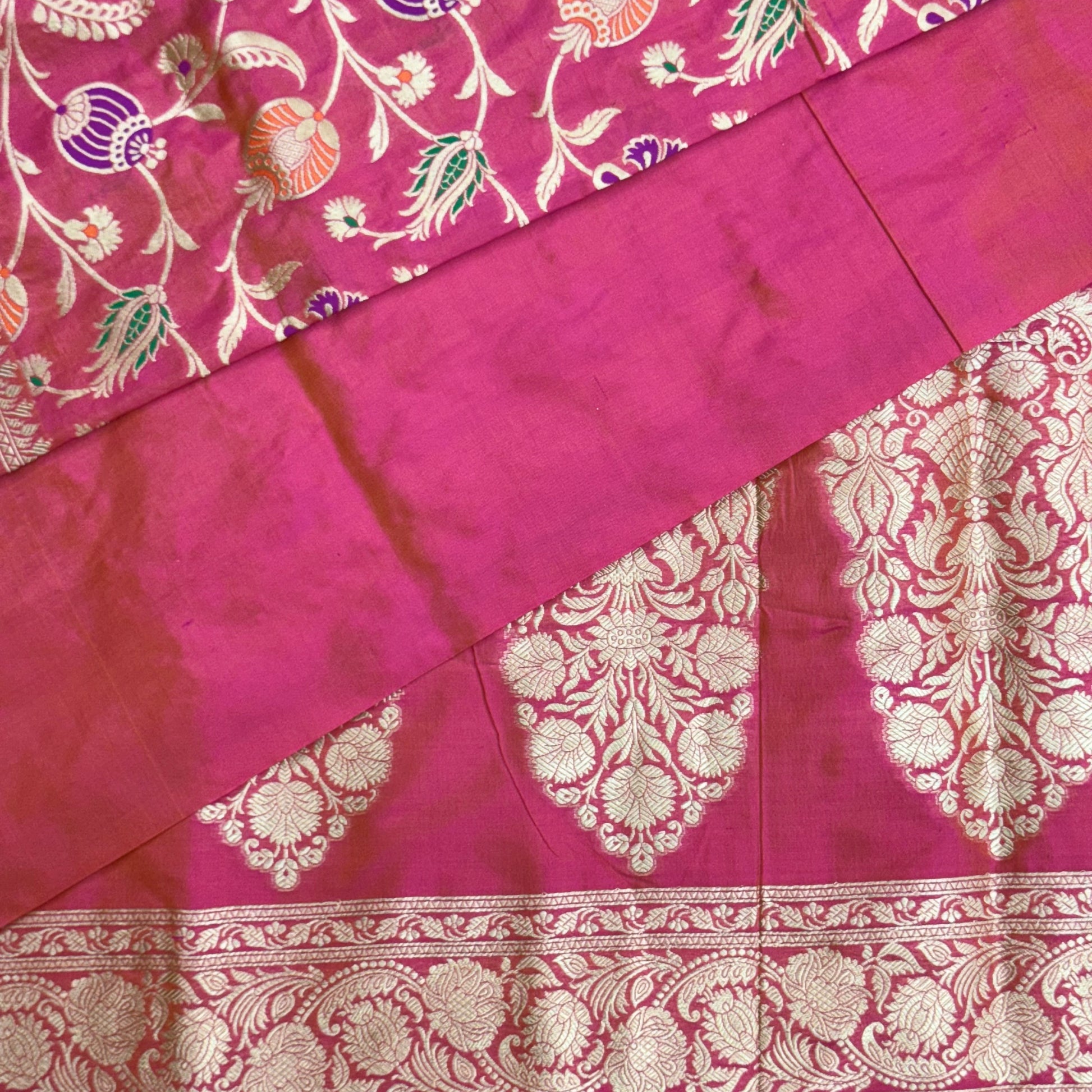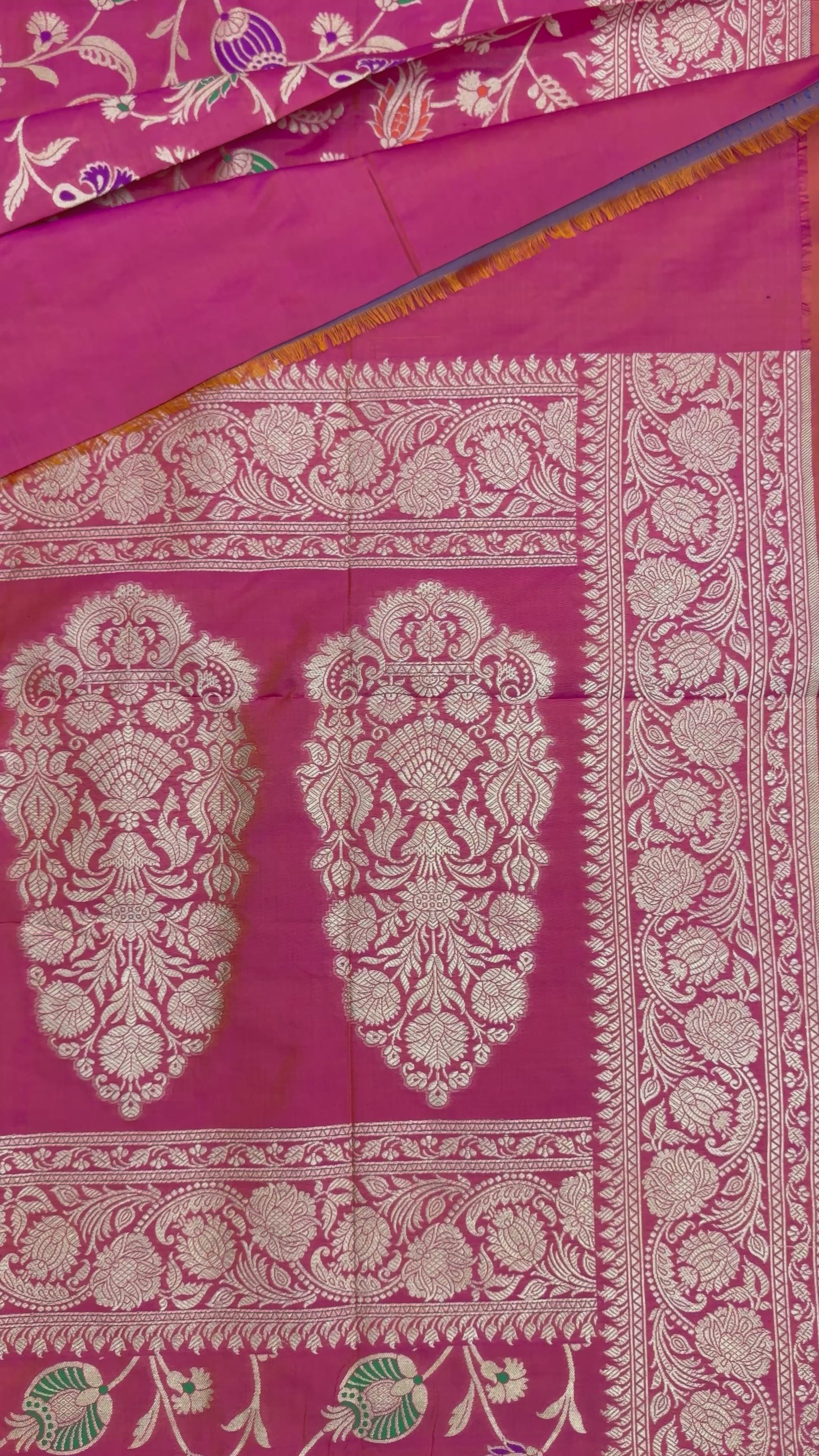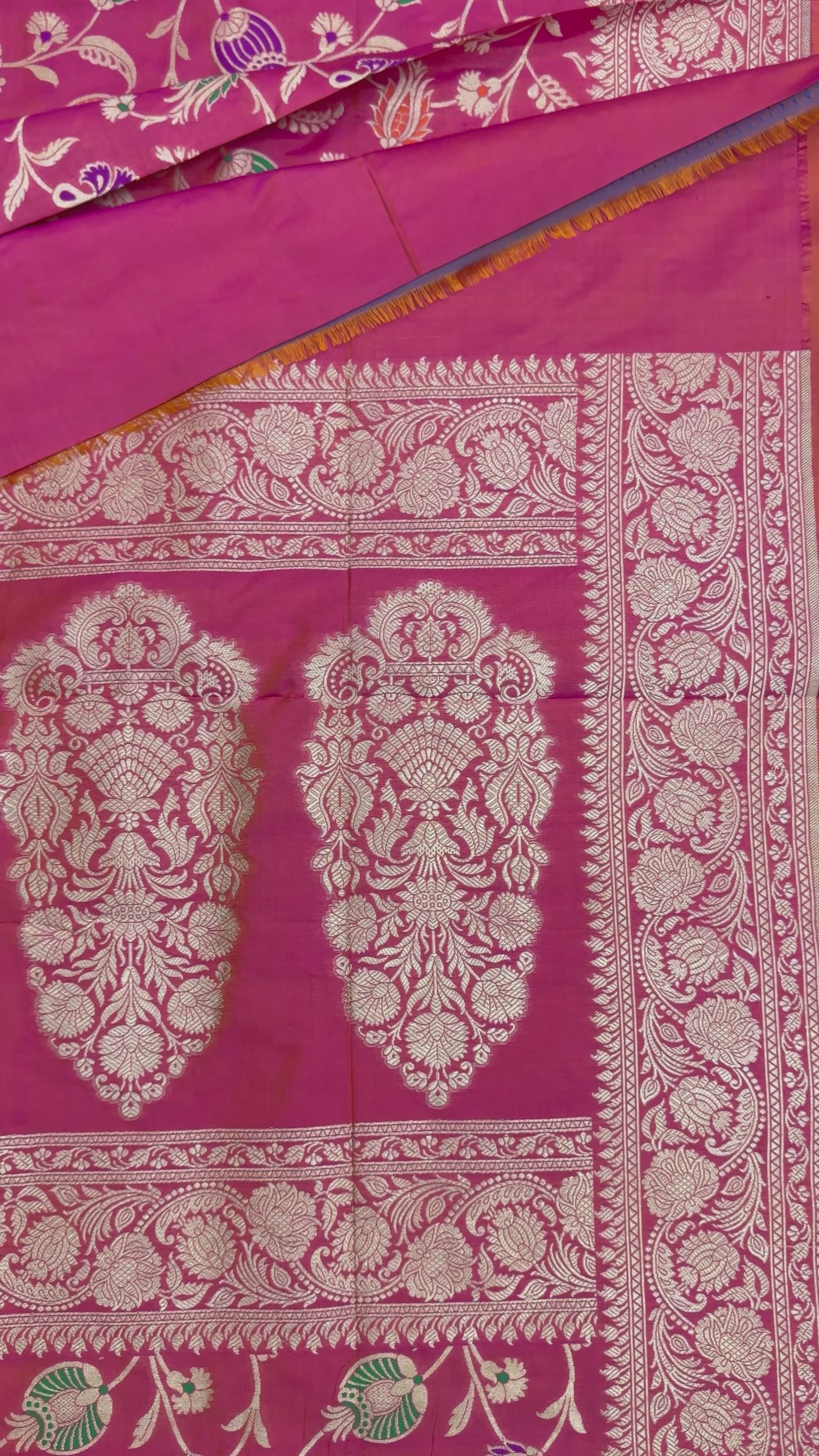 Pure Katan Silk Kadhua Style Jaal Meenkari Design Floral Border Coral Pink Banarasi Sari