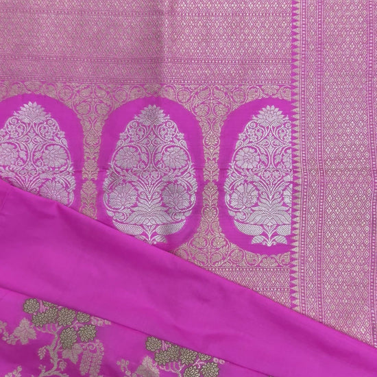 Pure Katan Silk Kadhua Style Jaal Meenkari Design Floral Border Pink Banarasi Sari
