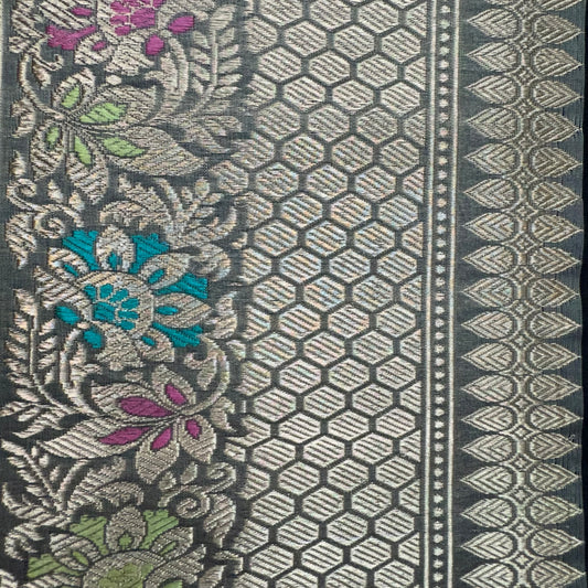 Pure Katan Phekwa Handwoven Butidar Meenakari Border Meenakari Black Banasari Saree