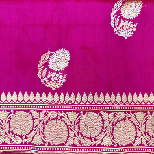 Pure Katan Phekwa Handwoven Butidar Meenakari Rani Pink Banasari Saree
